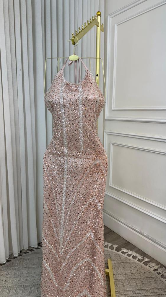 ٤٩٩تألقي بإطلالة ملوكية لا تُنسى مع فستان السهرة الوردي الميتاليك، المصمّم بقصة ضيقة تبرز جمال القوام وتفاصيل لامعة من الترتر المطرز يدويًا على كامل القماش. الخامة الفاخرة من قماش السهرة الثقيل تعزز ثبات التصميم، بينما ينسدل الذيل الخلفي المصنوع من قماش ميكادو اللامع ليمنحك حضورًا آسرًا في المناسبات الرفيعة. تصميم الهالتر بدون أكمام يضفي لمسة أنثوية جريئة، مثالي لمن تبحث عن التميز والتفرّد.