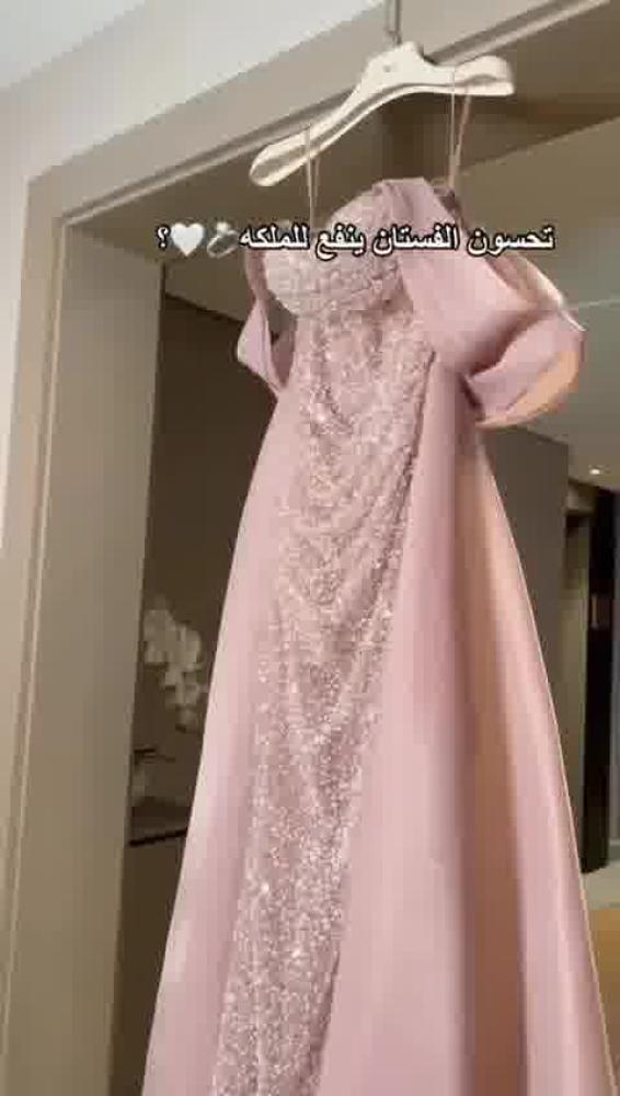 فستان الخامه:ترتر ع خرز + بلور + بطانه تفته استرتش ع اورجنزا لحمي