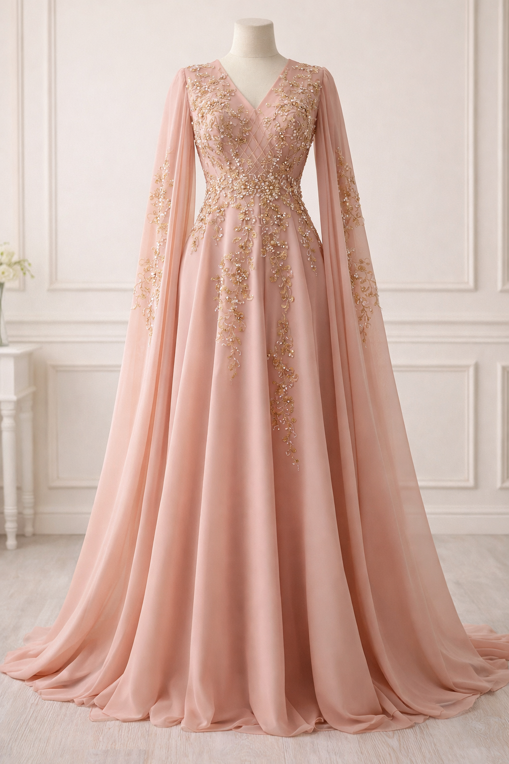 If you're searching for a modest long evening dress that combines softness, elegance, and luxury, hand-embroidered designs with flowing silhouettes are the perfect choice this season.