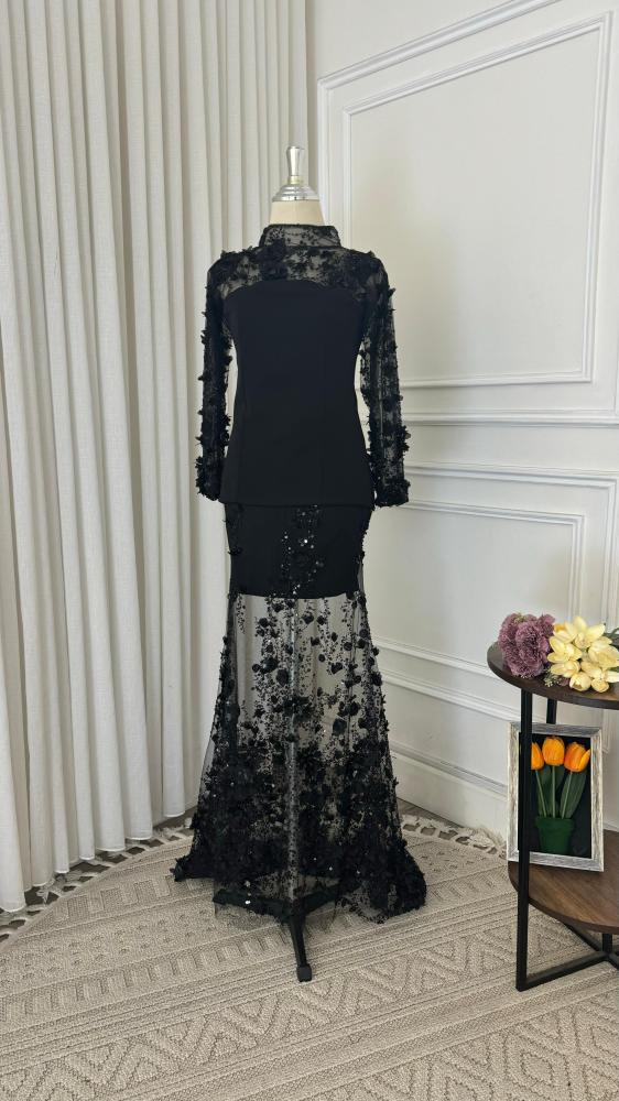 Black Blossom is more than a dress – it's a statement of elegance. Crafted with premium Barbie fabric and hand-embroidered sheer tulle adorned with black beads and 3D floral accents, it enhances your figure and elevates your look for any glamorous occasion.